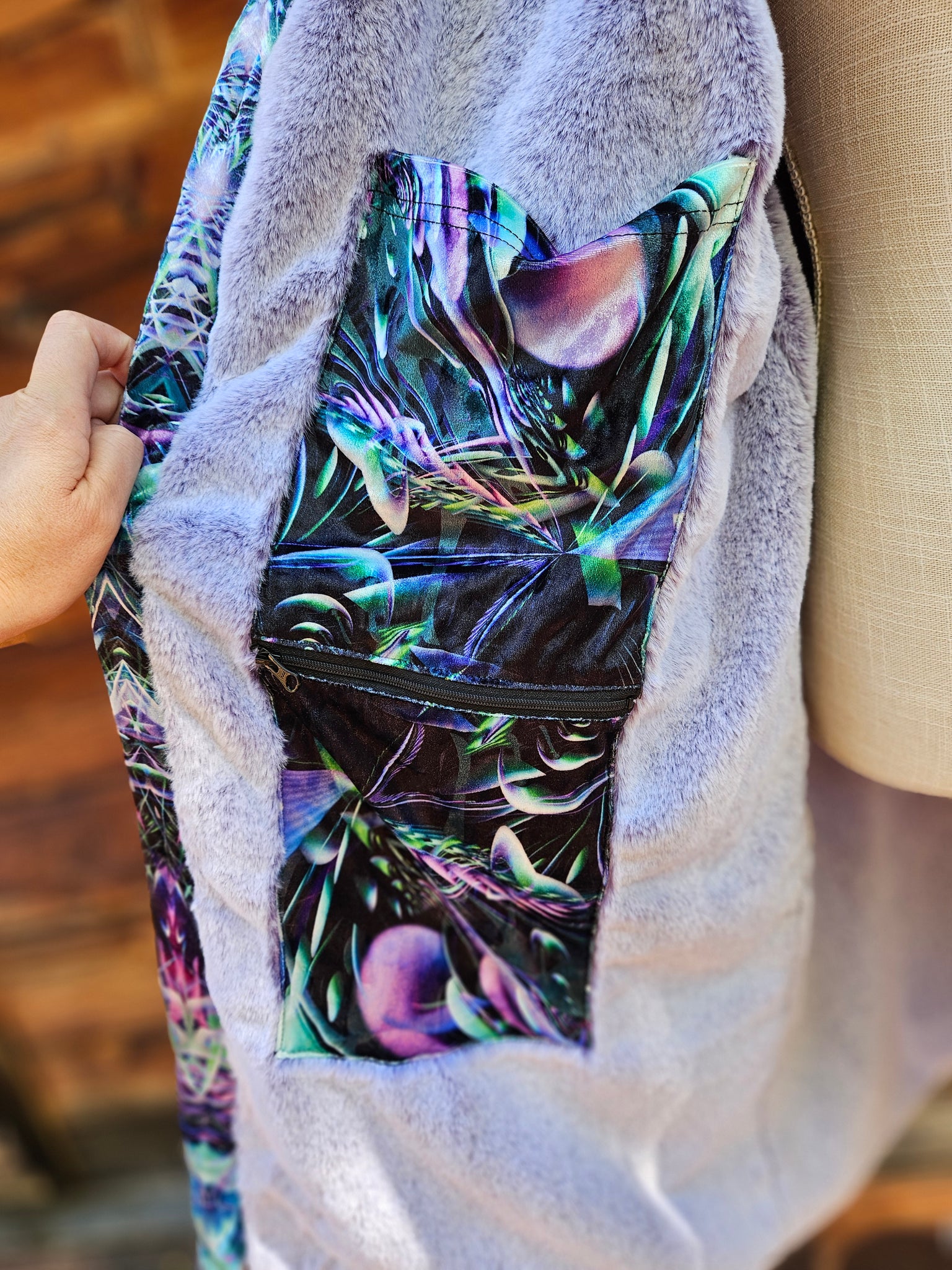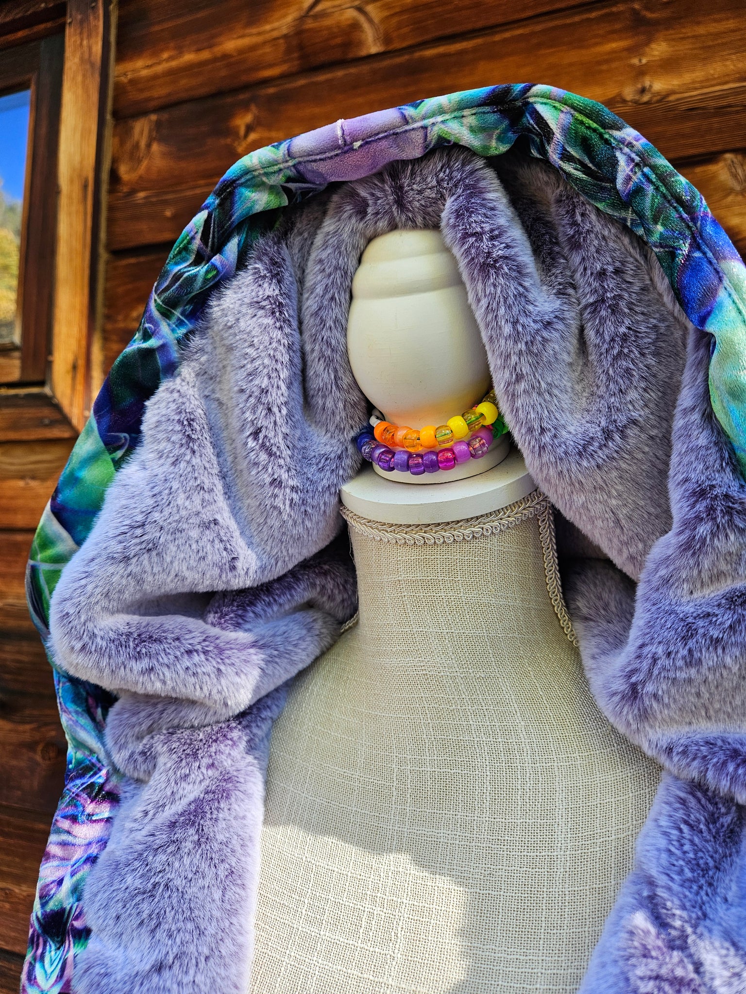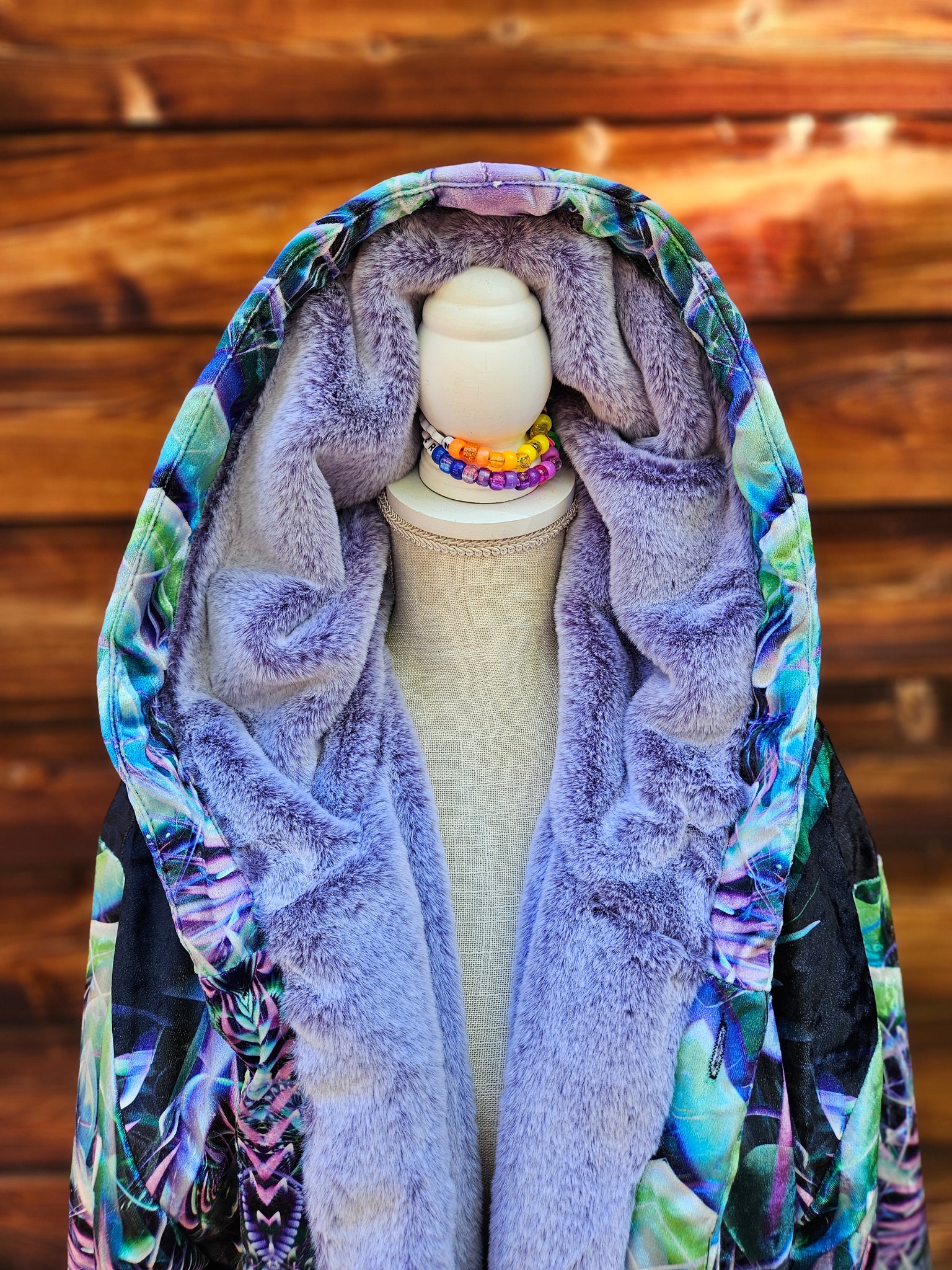 Hypnagogia Crushed Velvet Cloak with Purple Faux Fur lining- SO COMFY! (This is the same Faux Fur we use for our Dripper Hoodies)