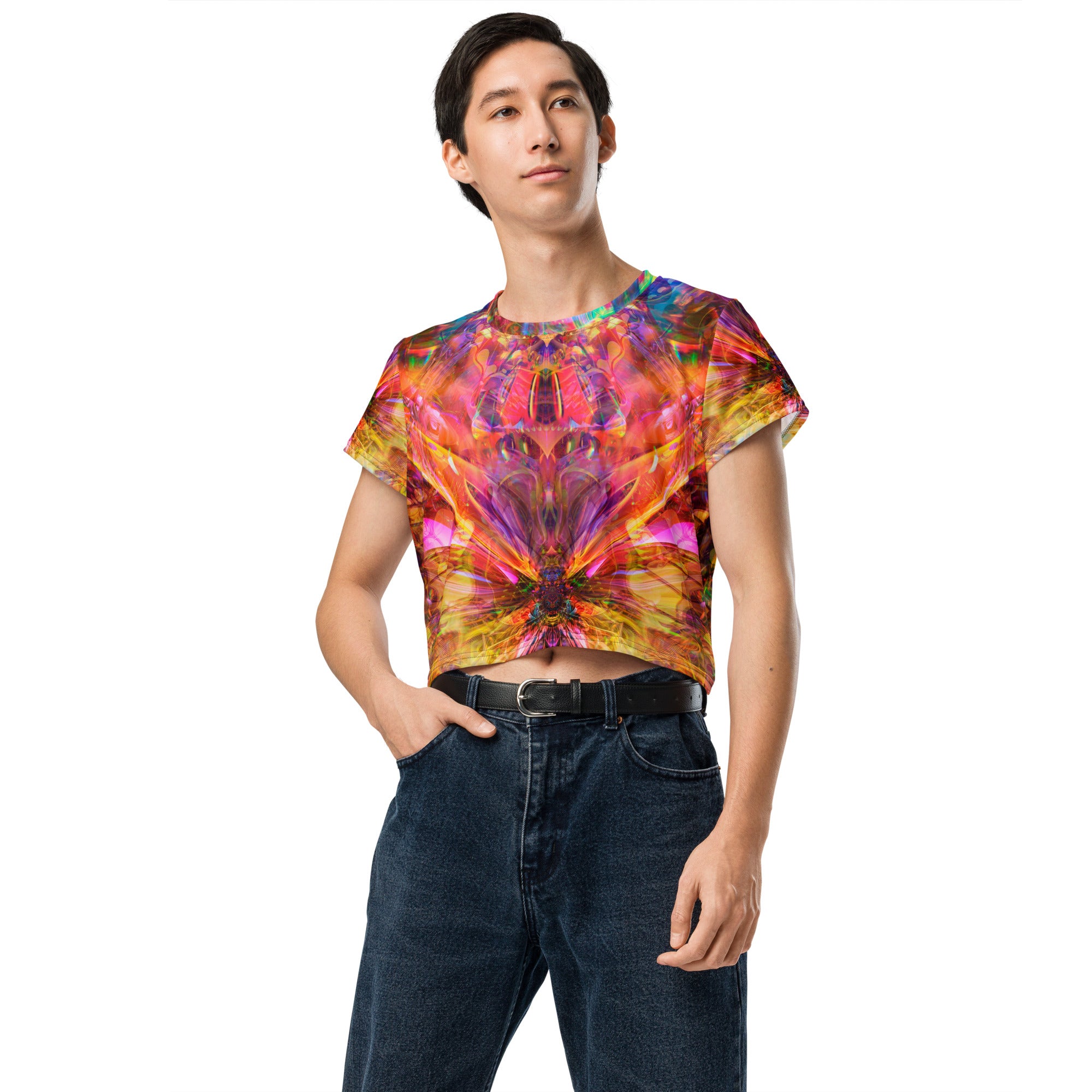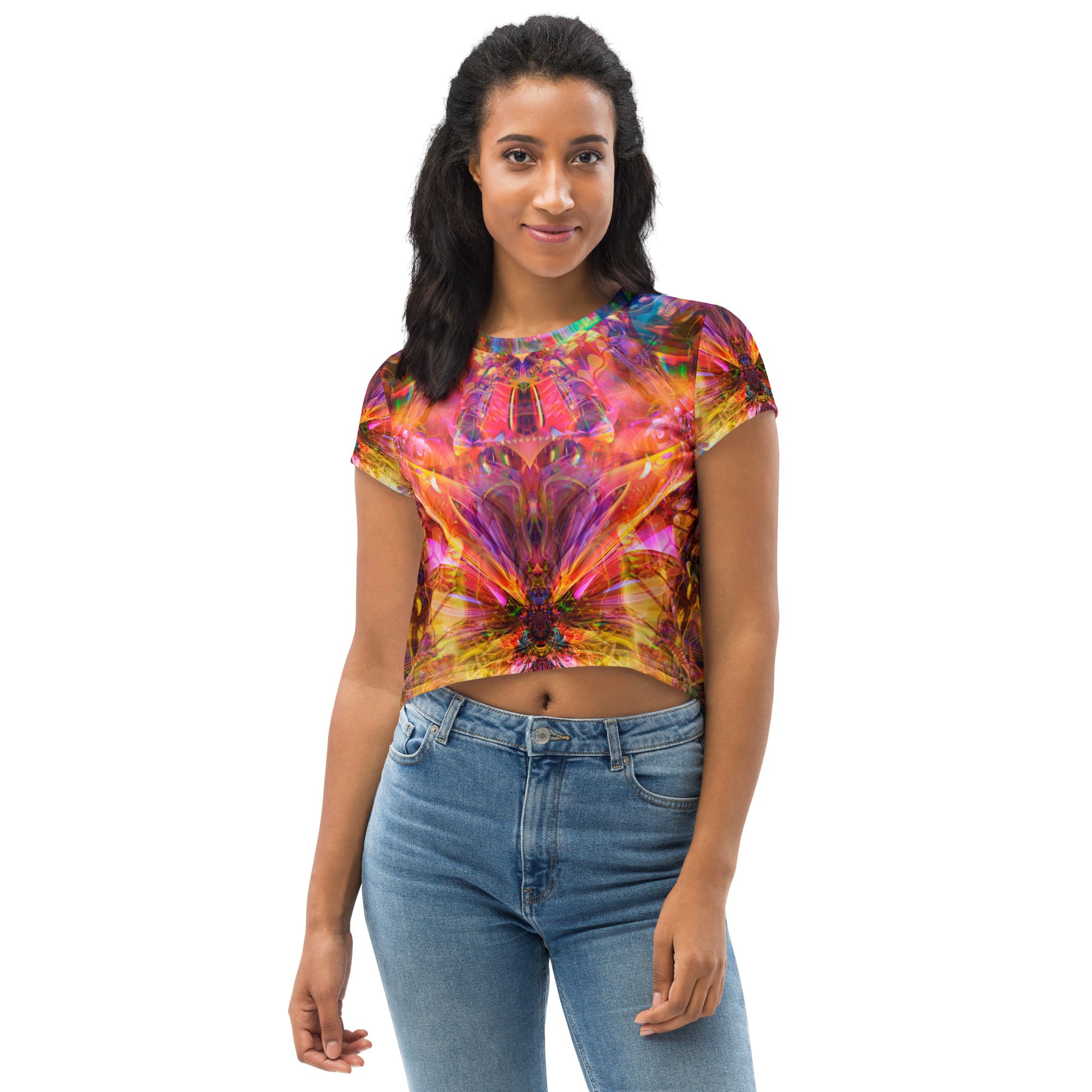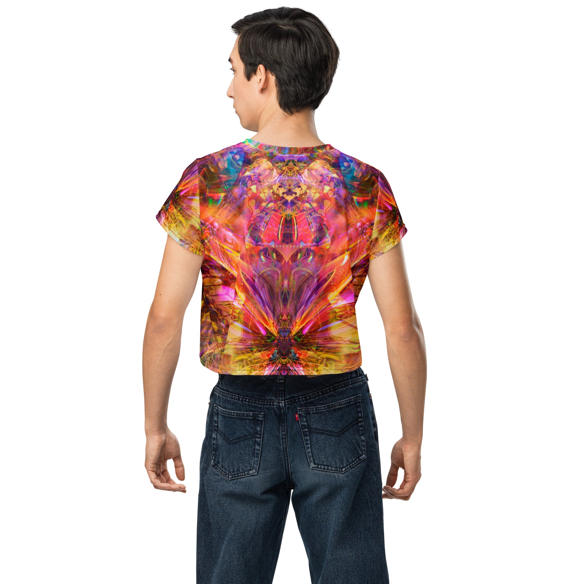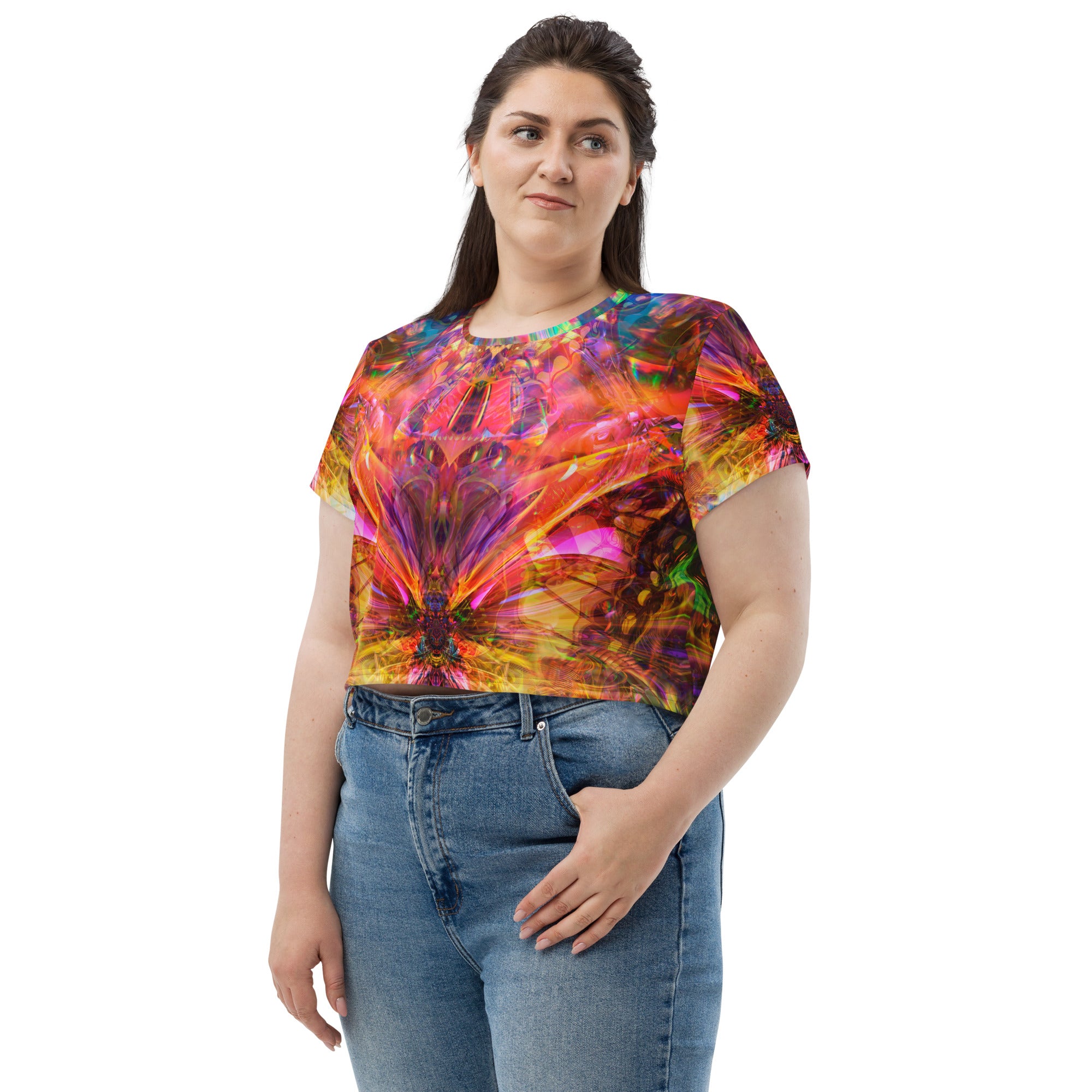 Looking for you next wardrobe favorite? Well, look no further because this crop tee is printed and sewn to fit you just right. To top that off, the original all-over design is definitely worth showing off, so don't hesitate to own one of these tees - they're meant to be adored.