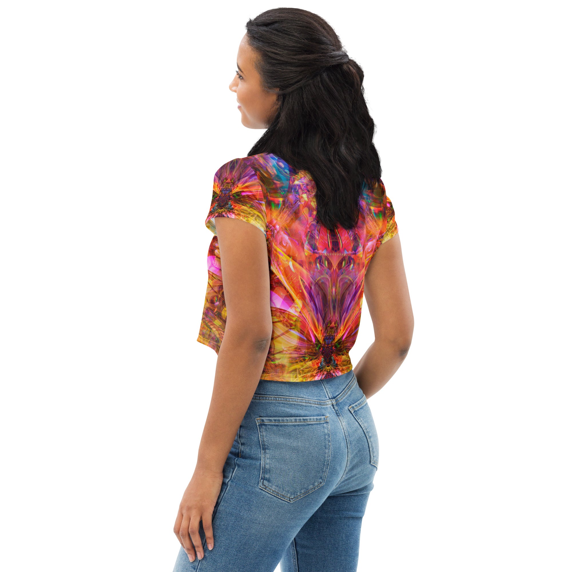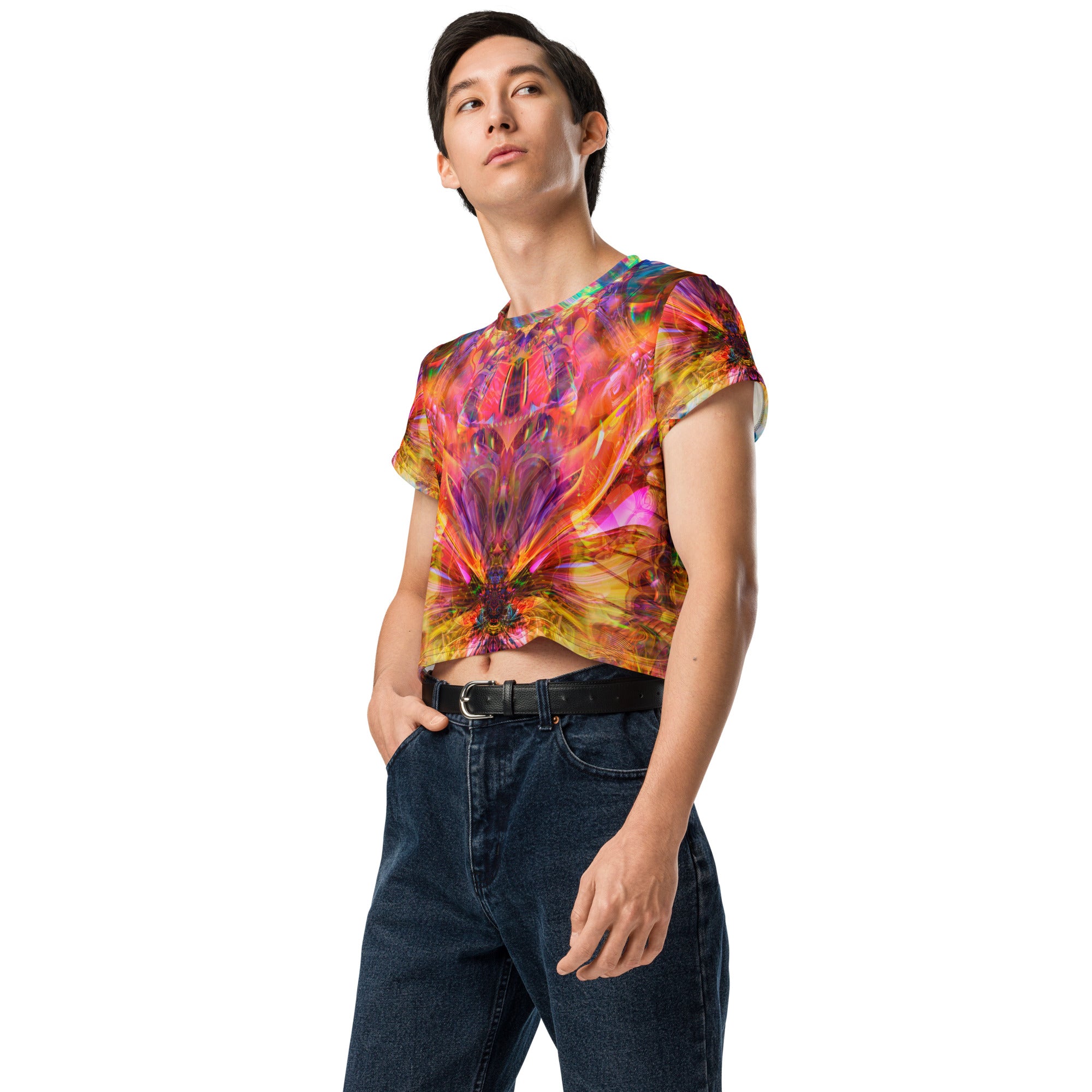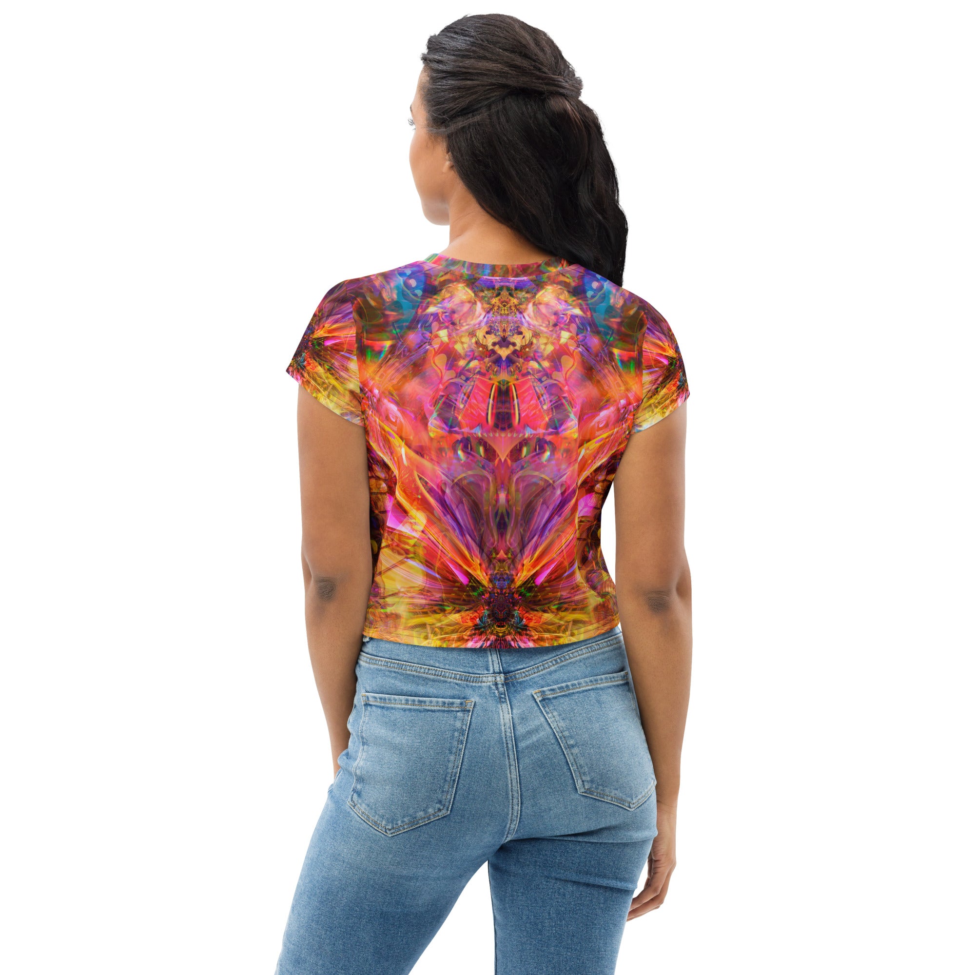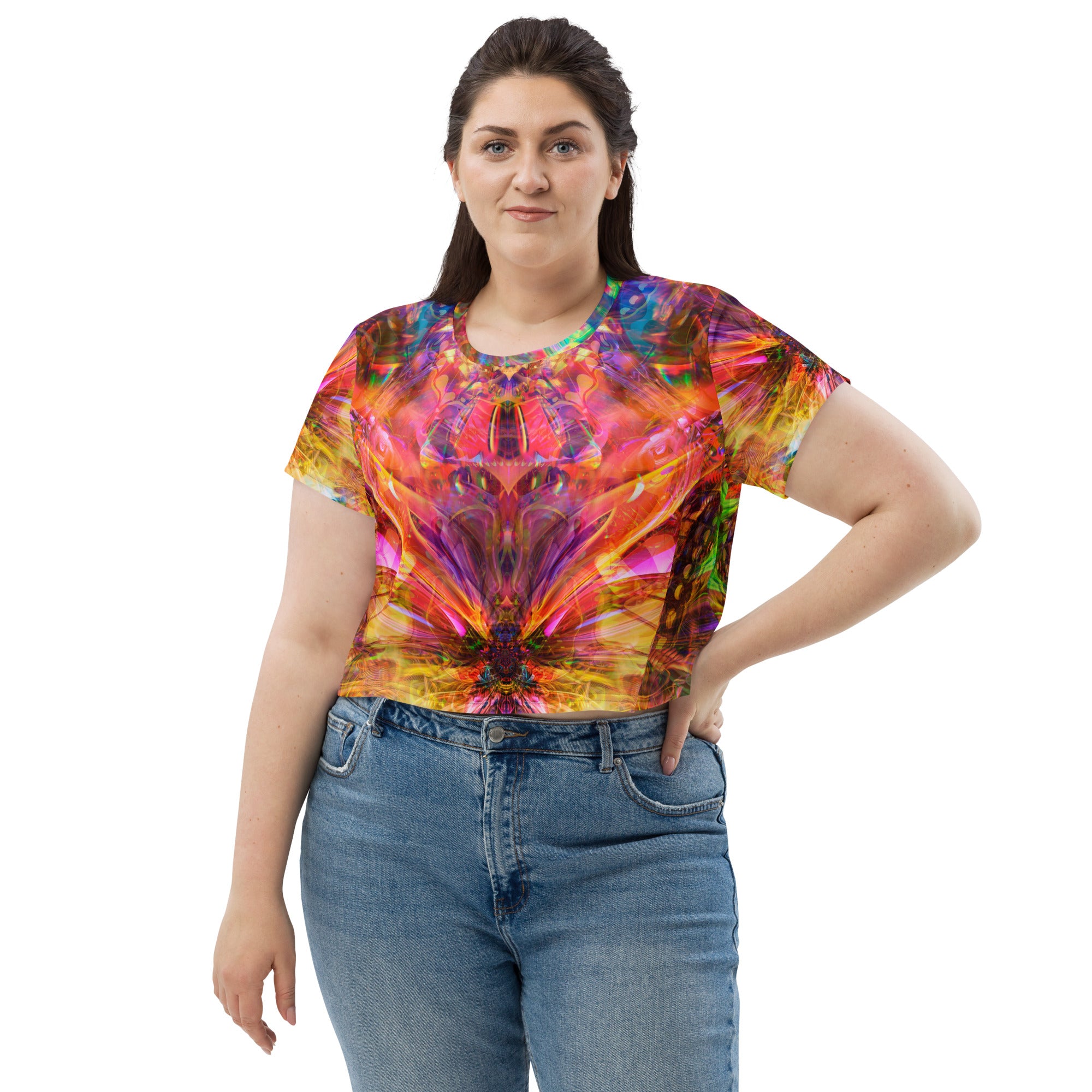 Looking for you next wardrobe favorite? Well, look no further because this crop tee is printed and sewn to fit you just right. To top that off, the original all-over design is definitely worth showing off, so don't hesitate to own one of these tees - they're meant to be adored.