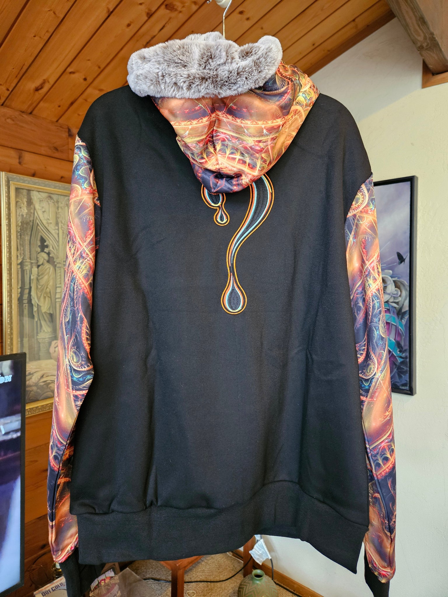 XL Dragon's Lair Pullover Dripper Hoodie with Brown Faux Fur in the hood