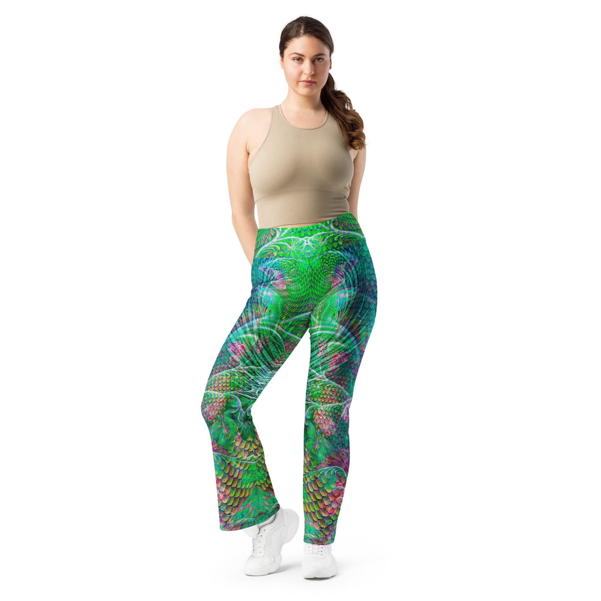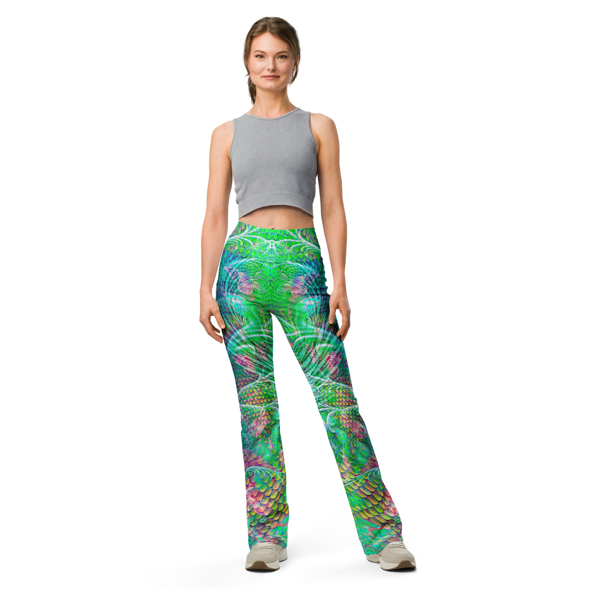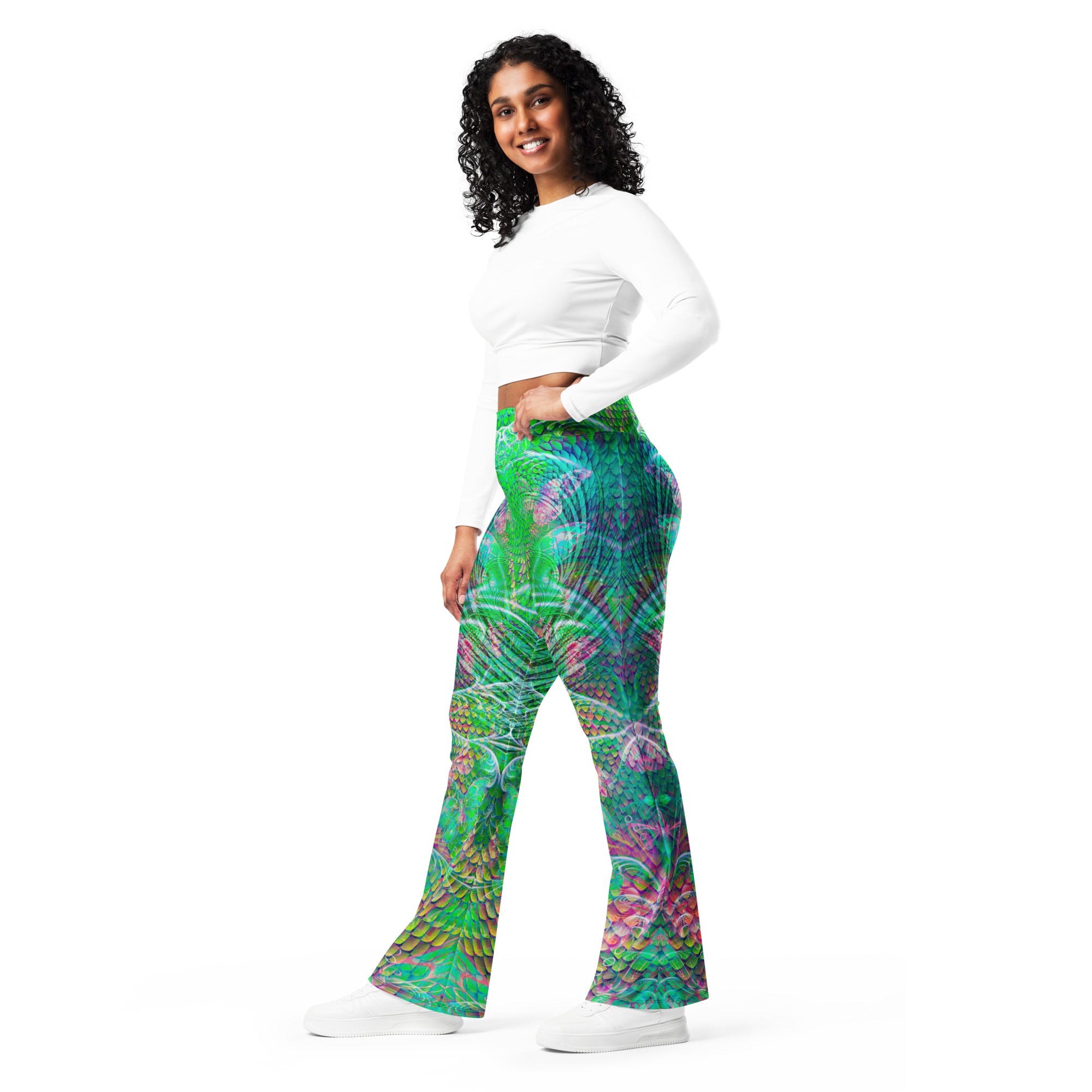 Designed to enhance your figure, these trendy leggings feature a high waist and a butt-lifting cut. The flared leg bottoms add a touch of style and make the leggings comfortable. Wear them on a walk, to the gym, or style them up with a bomber jacket or hoodie.