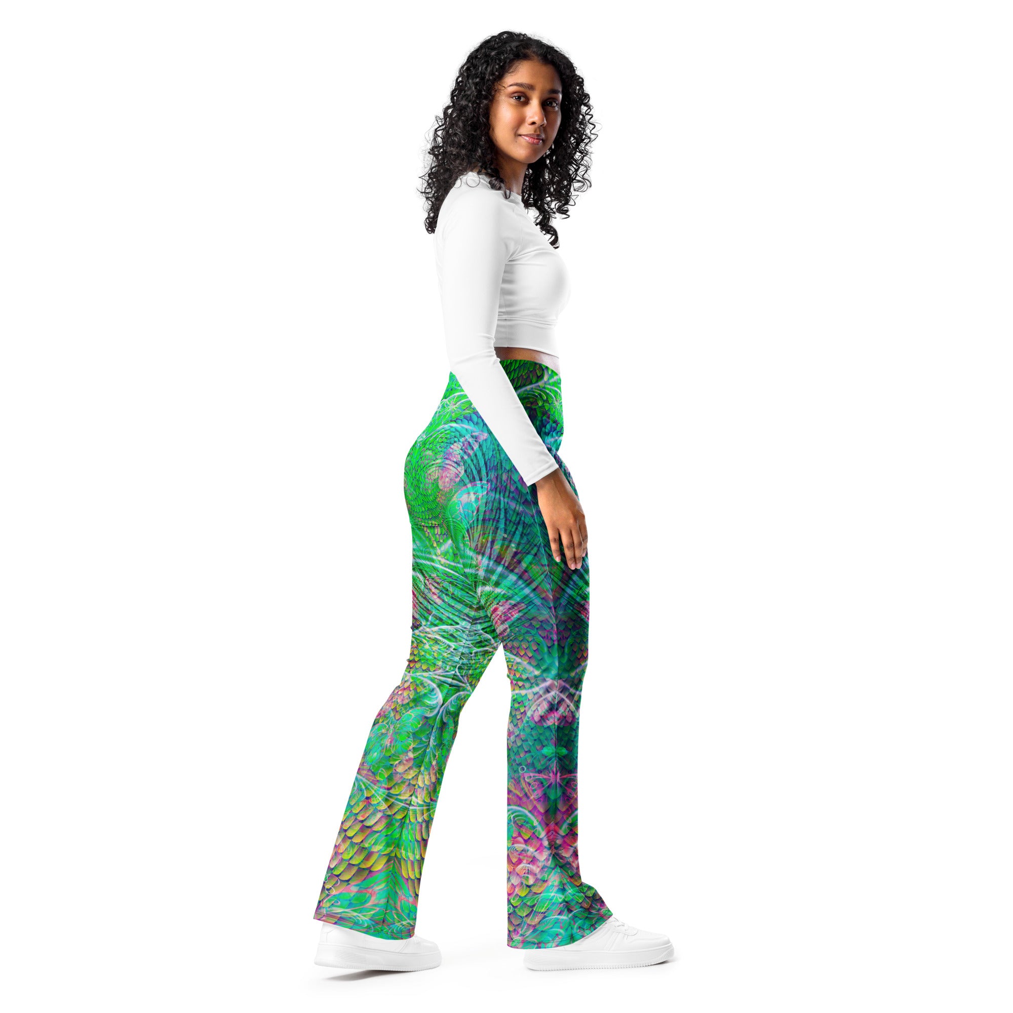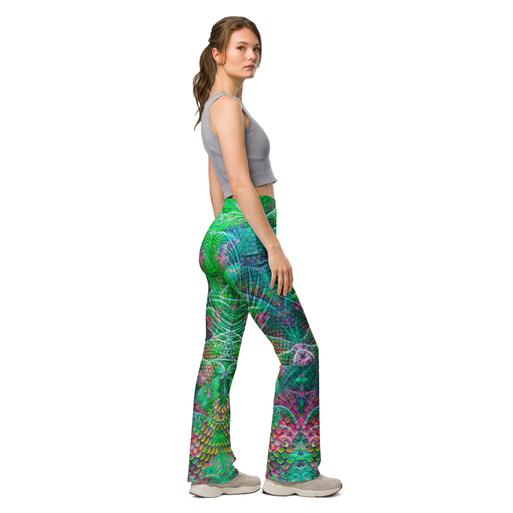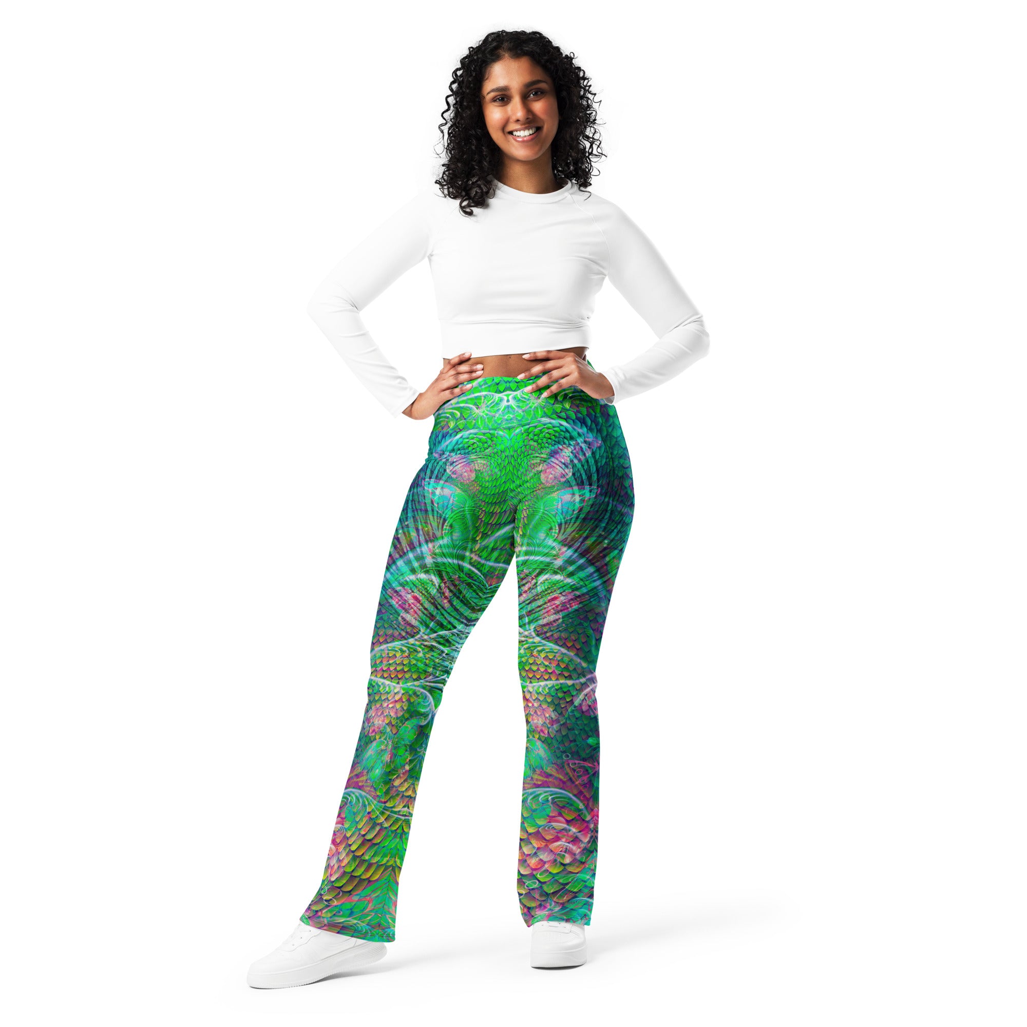 Designed to enhance your figure, these trendy leggings feature a high waist and a butt-lifting cut. The flared leg bottoms add a touch of style and make the leggings comfortable. Wear them on a walk, to the gym, or style them up with a bomber jacket or hoodie.