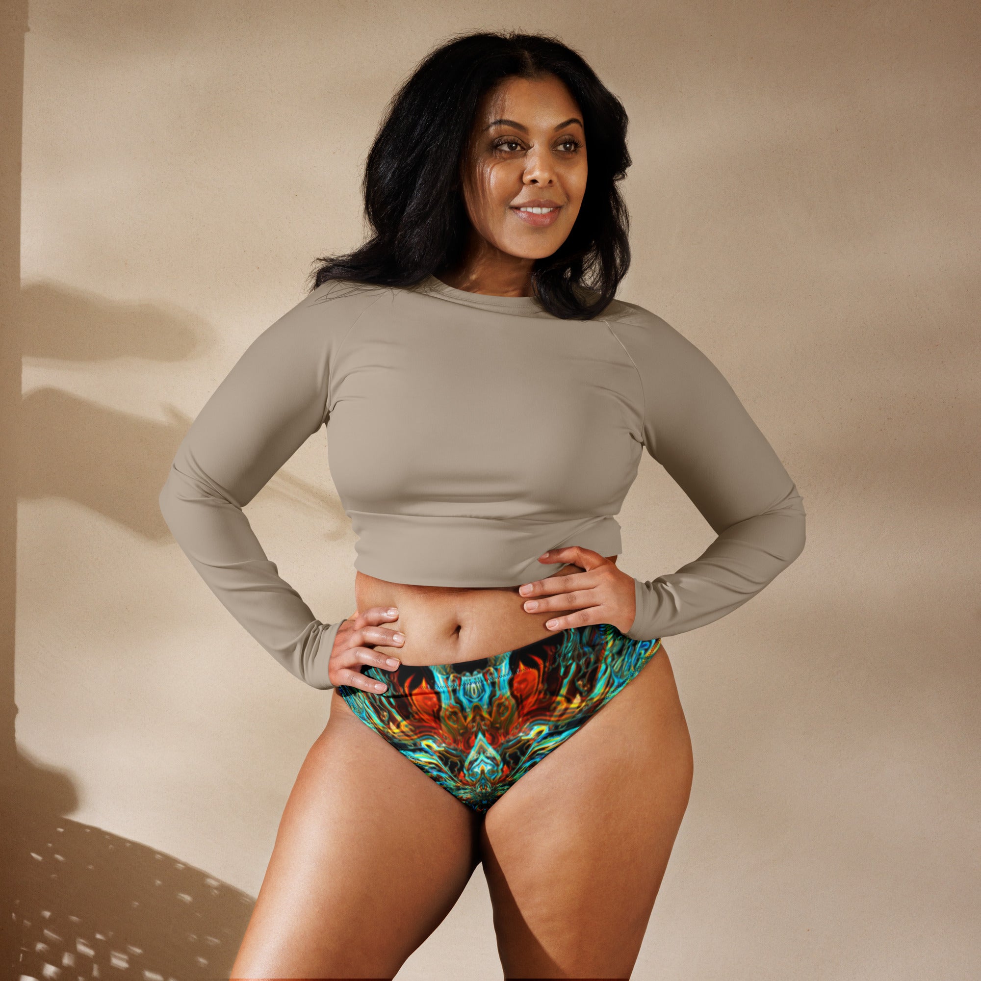 Get this Recycled high-waisted bikini bottom and match it with your favorite swimsuit top. It’s comfortable, high-waisted, and double-layered—perfect for an adventurous beach day or a chill spa visit!