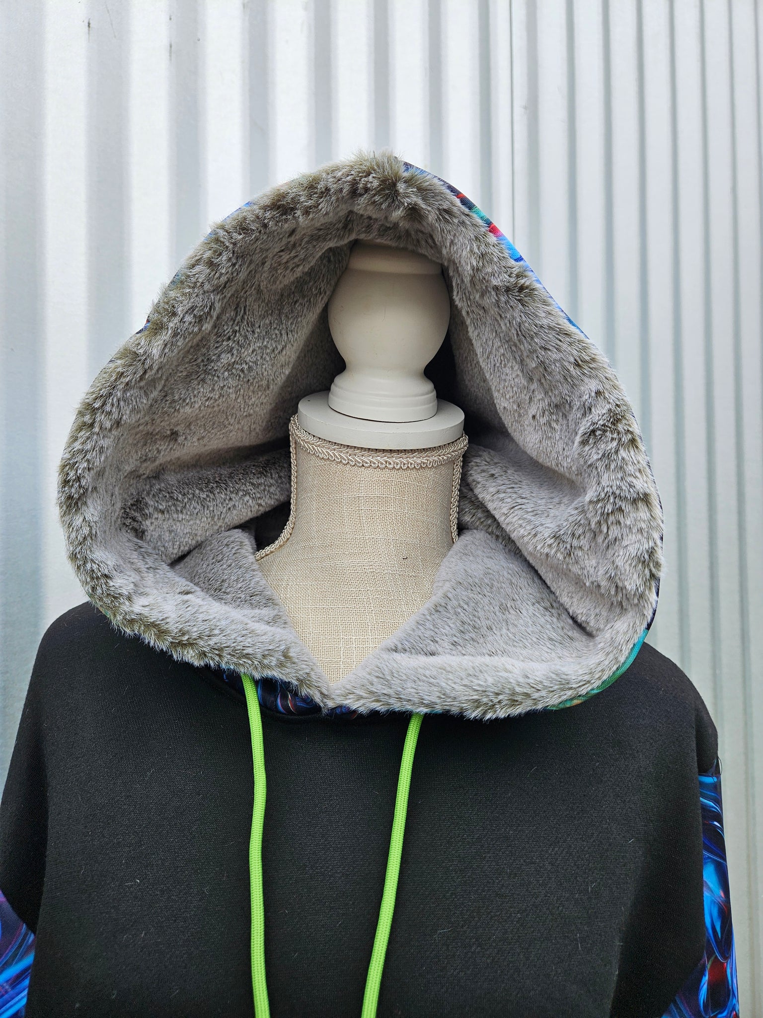 Suwampee Pullover Hoodie with a thin Olive Green Faux Fur in the hood