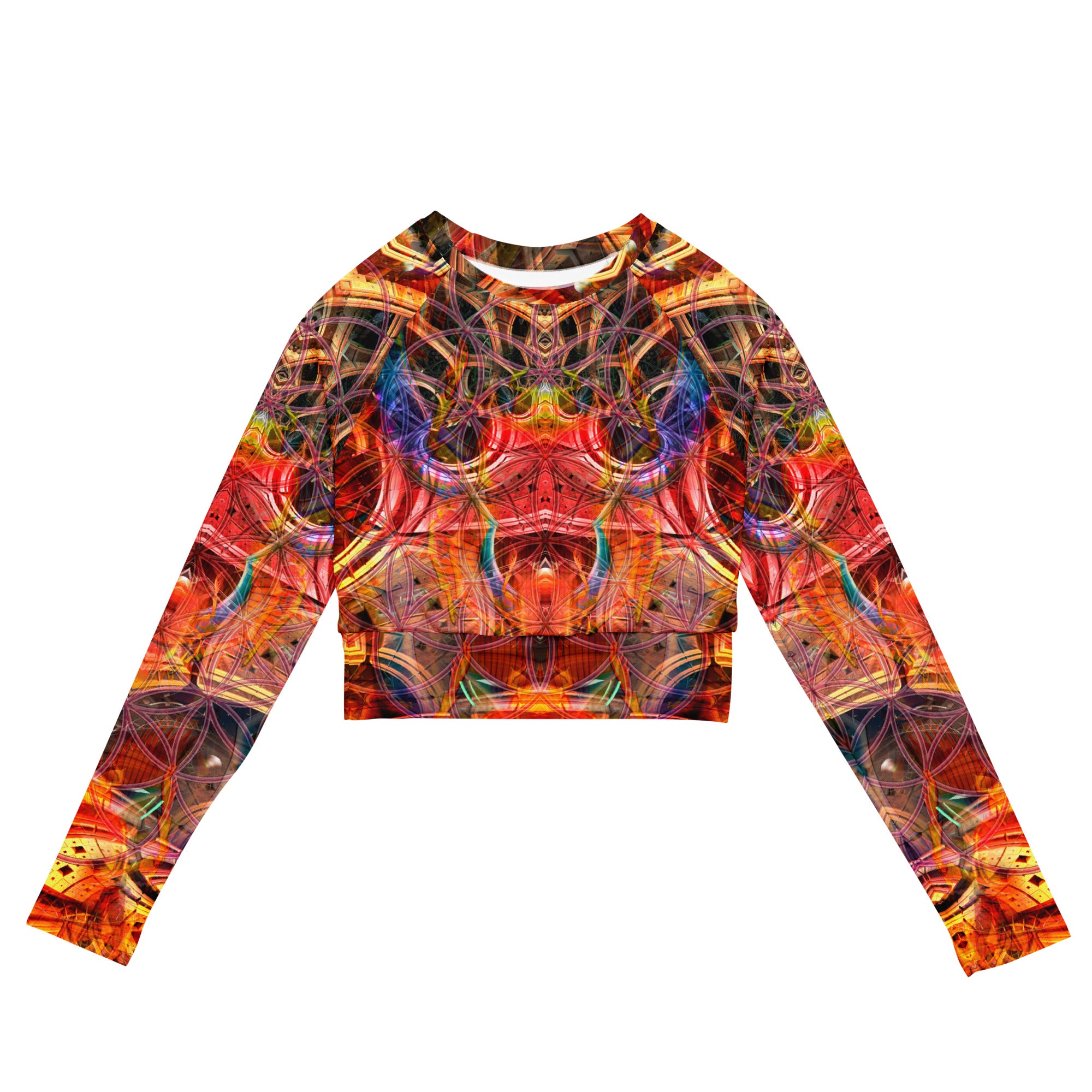 This long-sleeve crop top is made of recycled polyester and elastane, making it an eco-friendly choice for swimming, sports, or athleisure outfits. The crop top has a tear-away care label and a wide, double-layered waistline band for a comfortable fit.