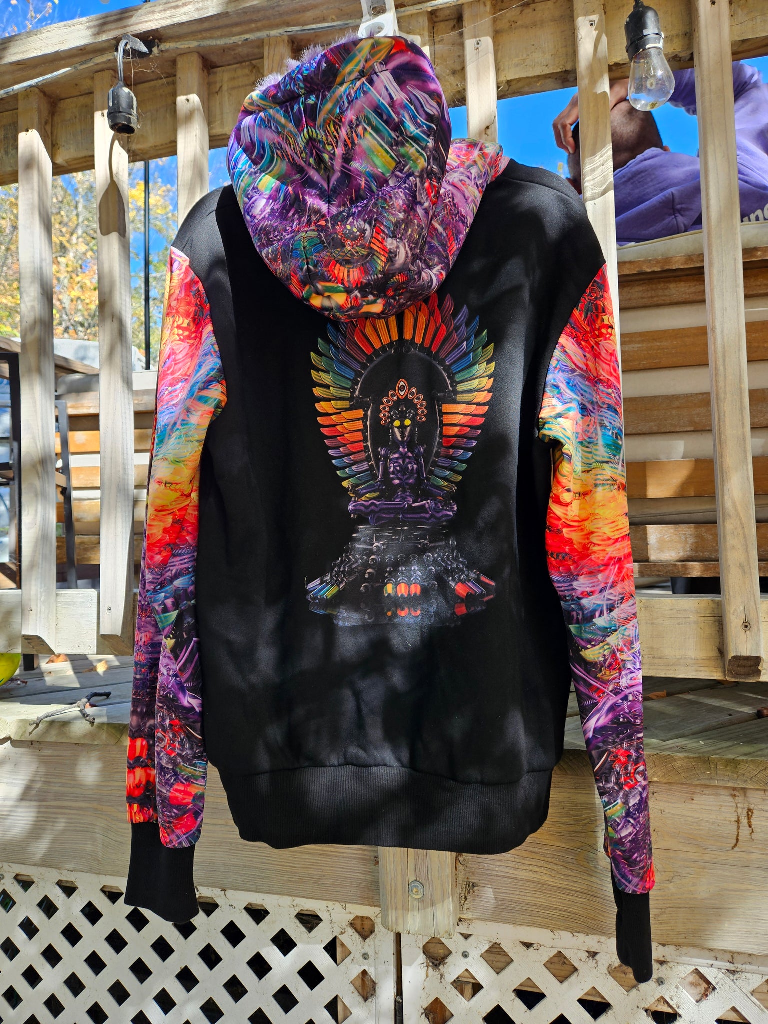 Medium Isis/Ina May Banjo Glass Remix Pullover Hoodie with Purple Faux Fur lined in the hood