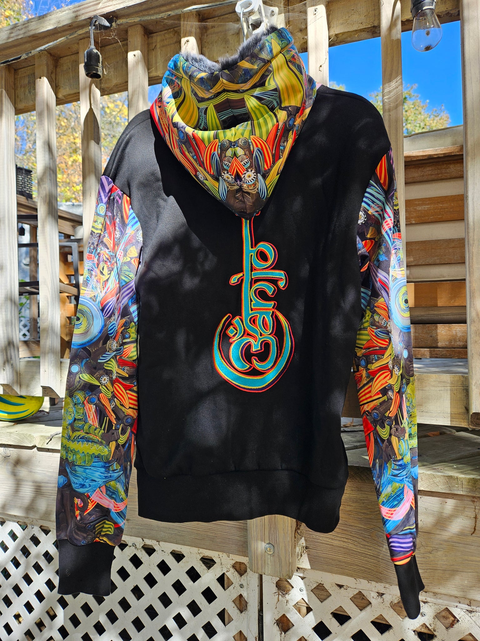 Medium Vishuddha Banjo Glass Remix Pullover Hoodie with Black silver tipped lined in the hood