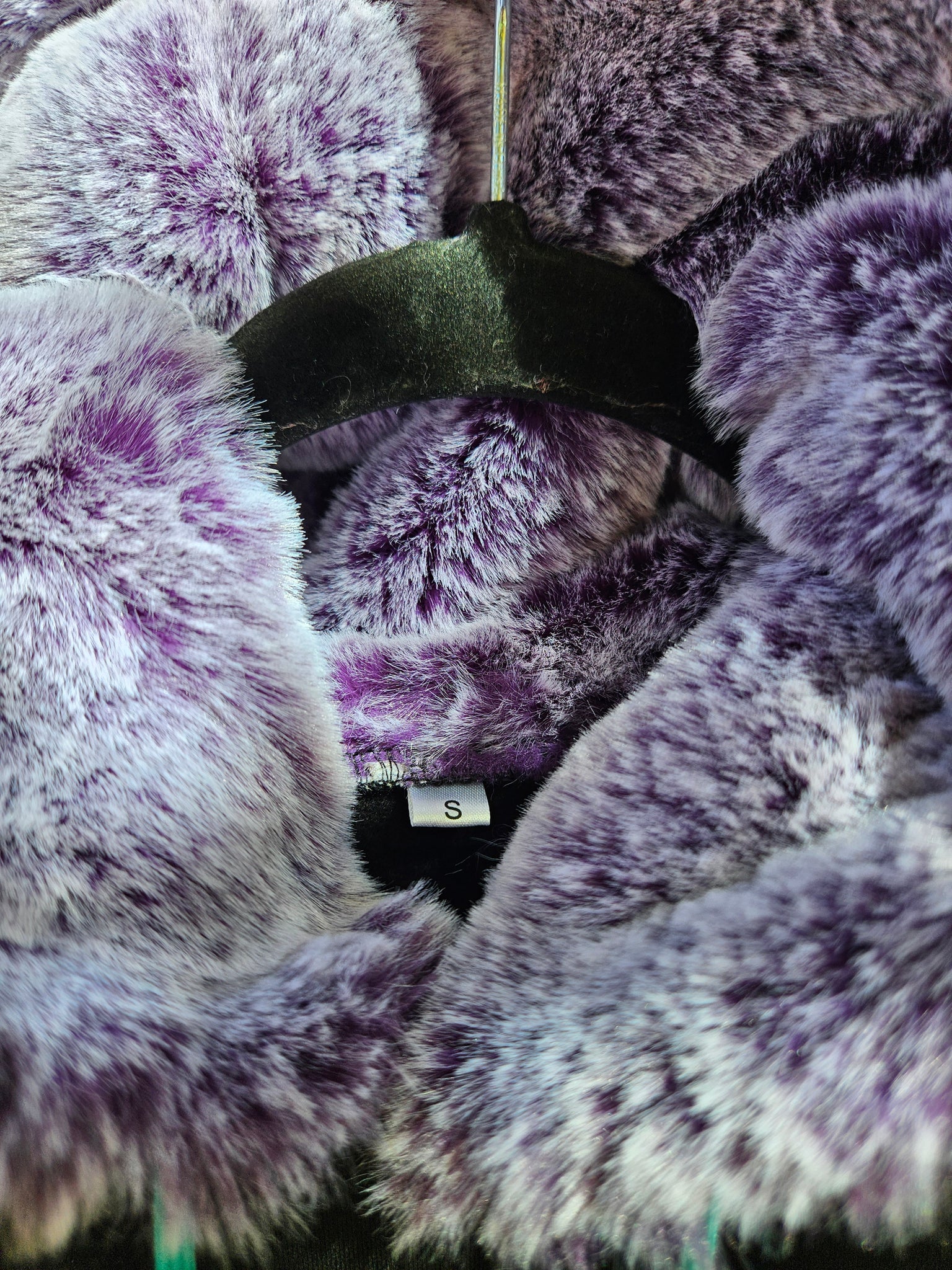 Small Isis/Ina May Banjo Glass Remix Pullover Hoodie with Purple Faux Fur lined in the hood