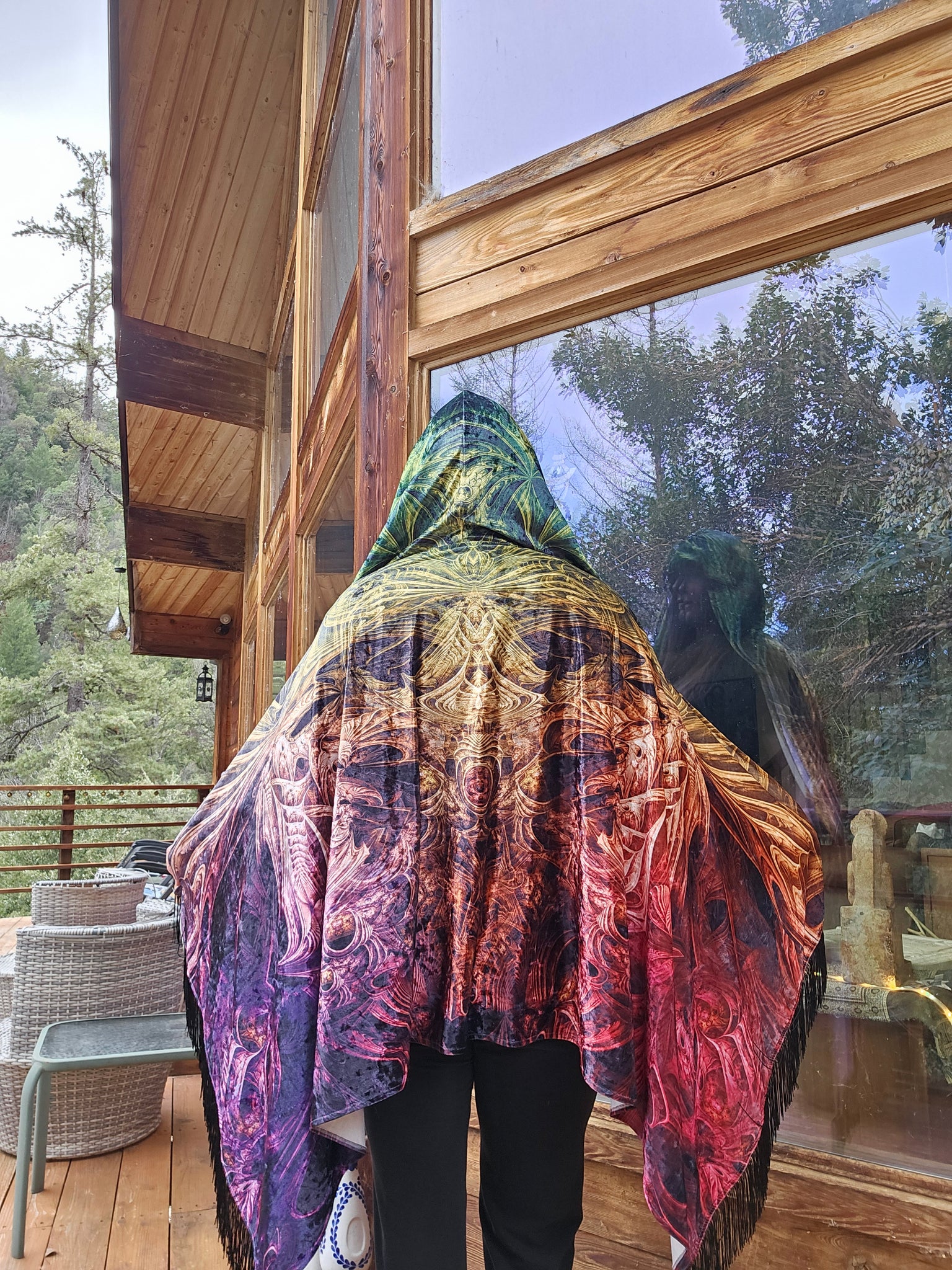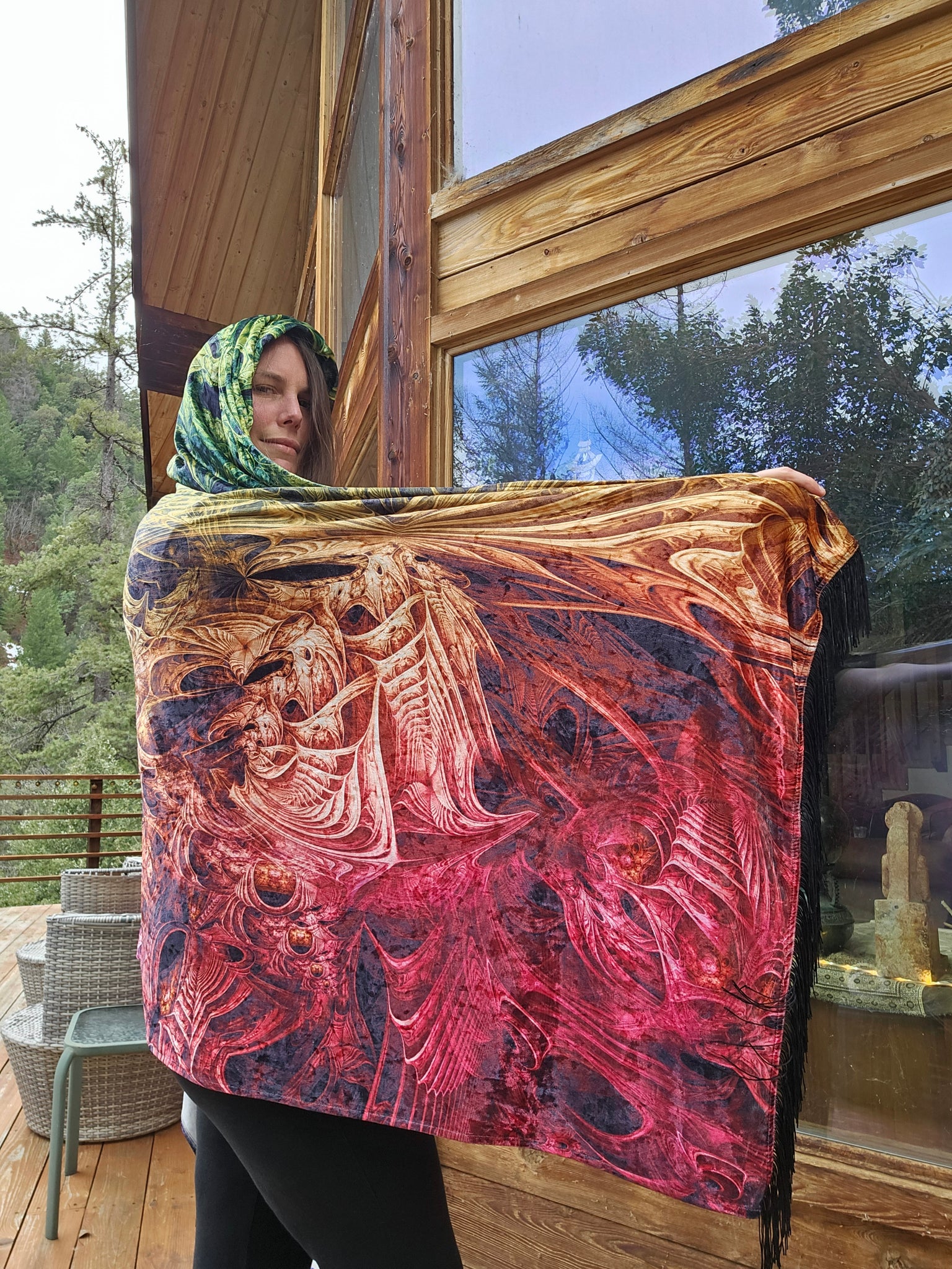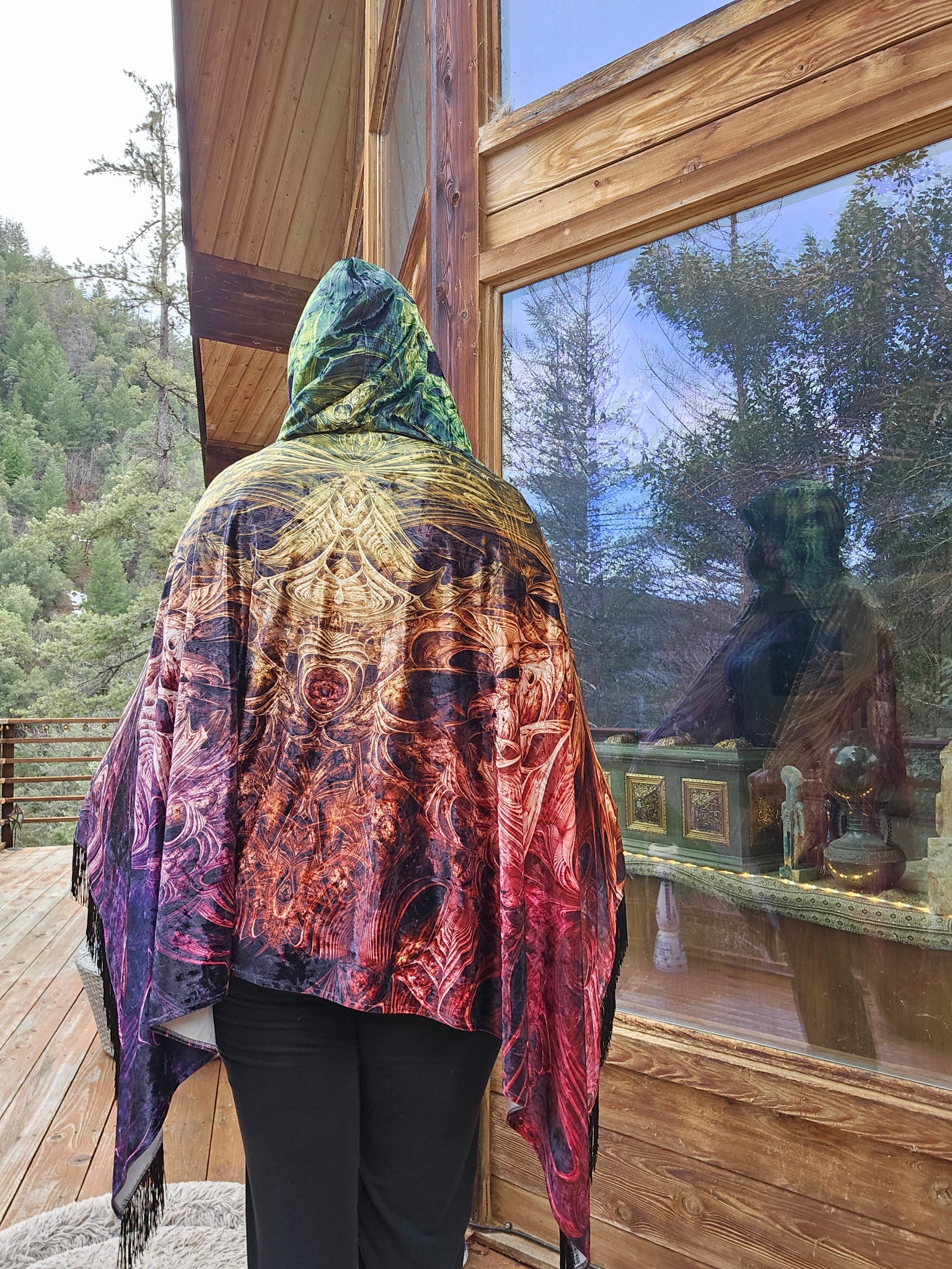 Spectral Evidence Velvet Hooded Pashmina with black fringe