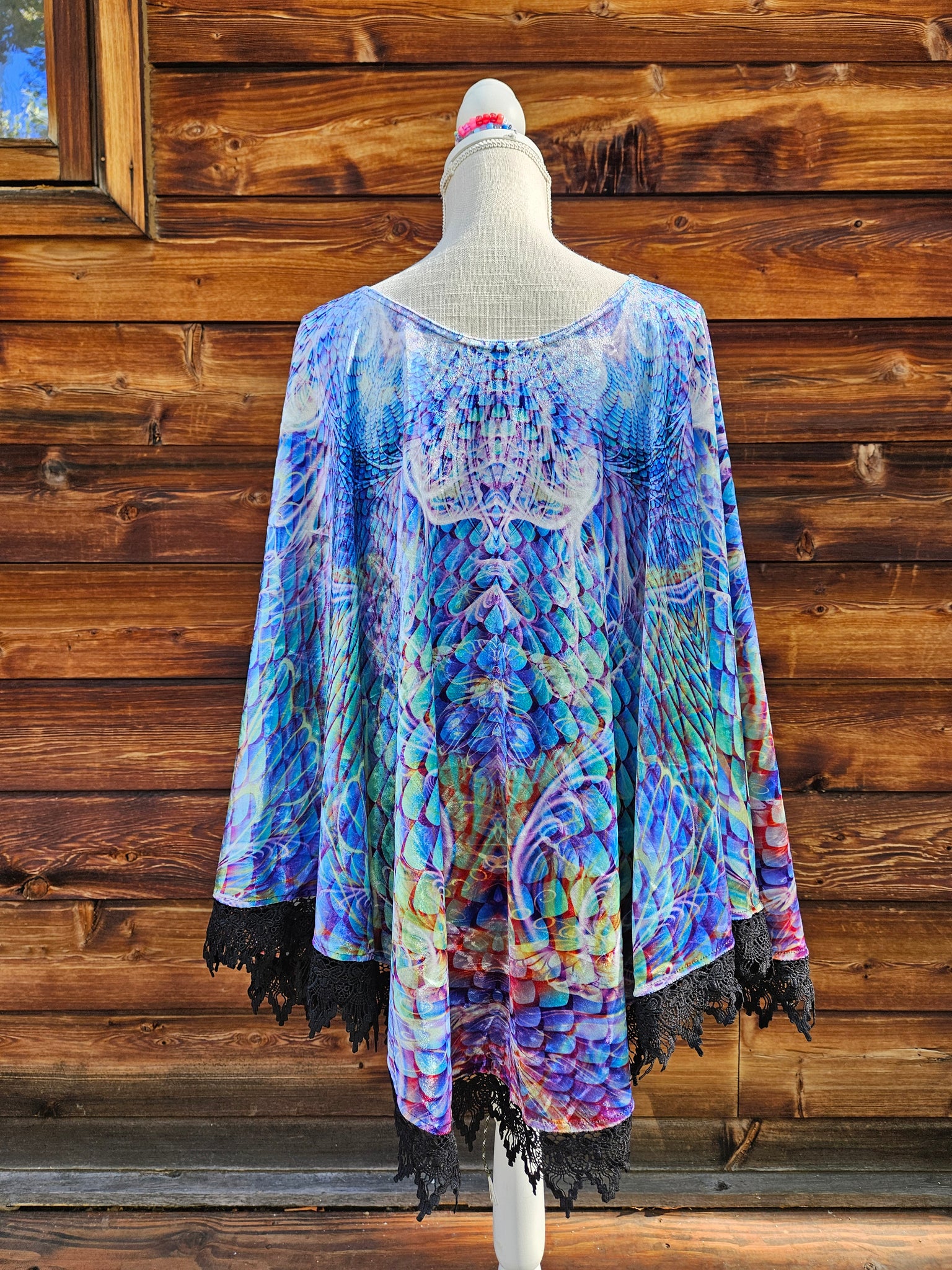 One size fits most~ Velvet pullover shawl with a lace trim.