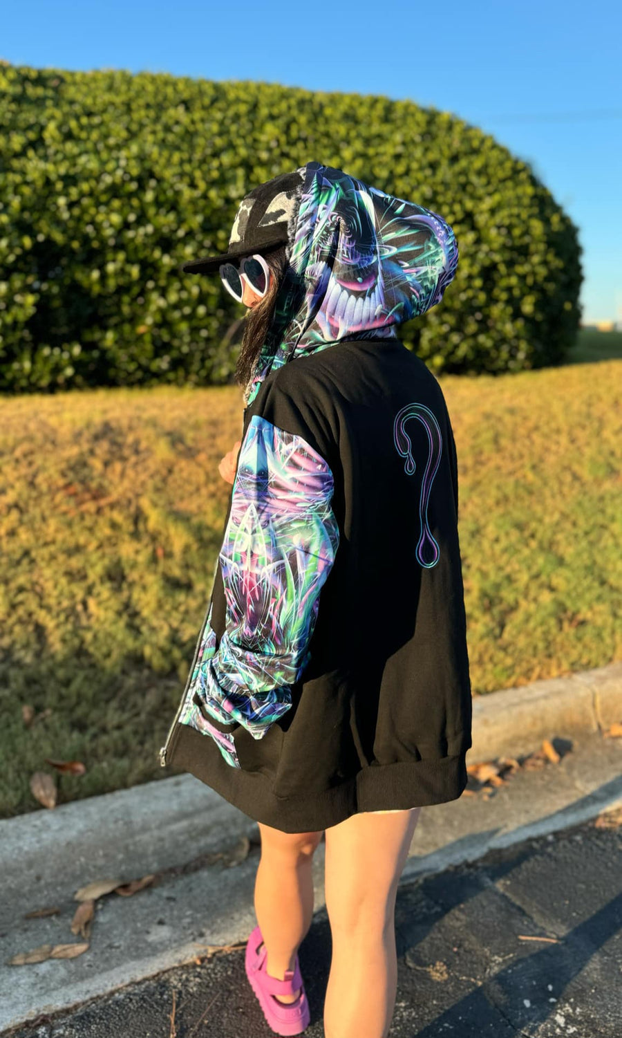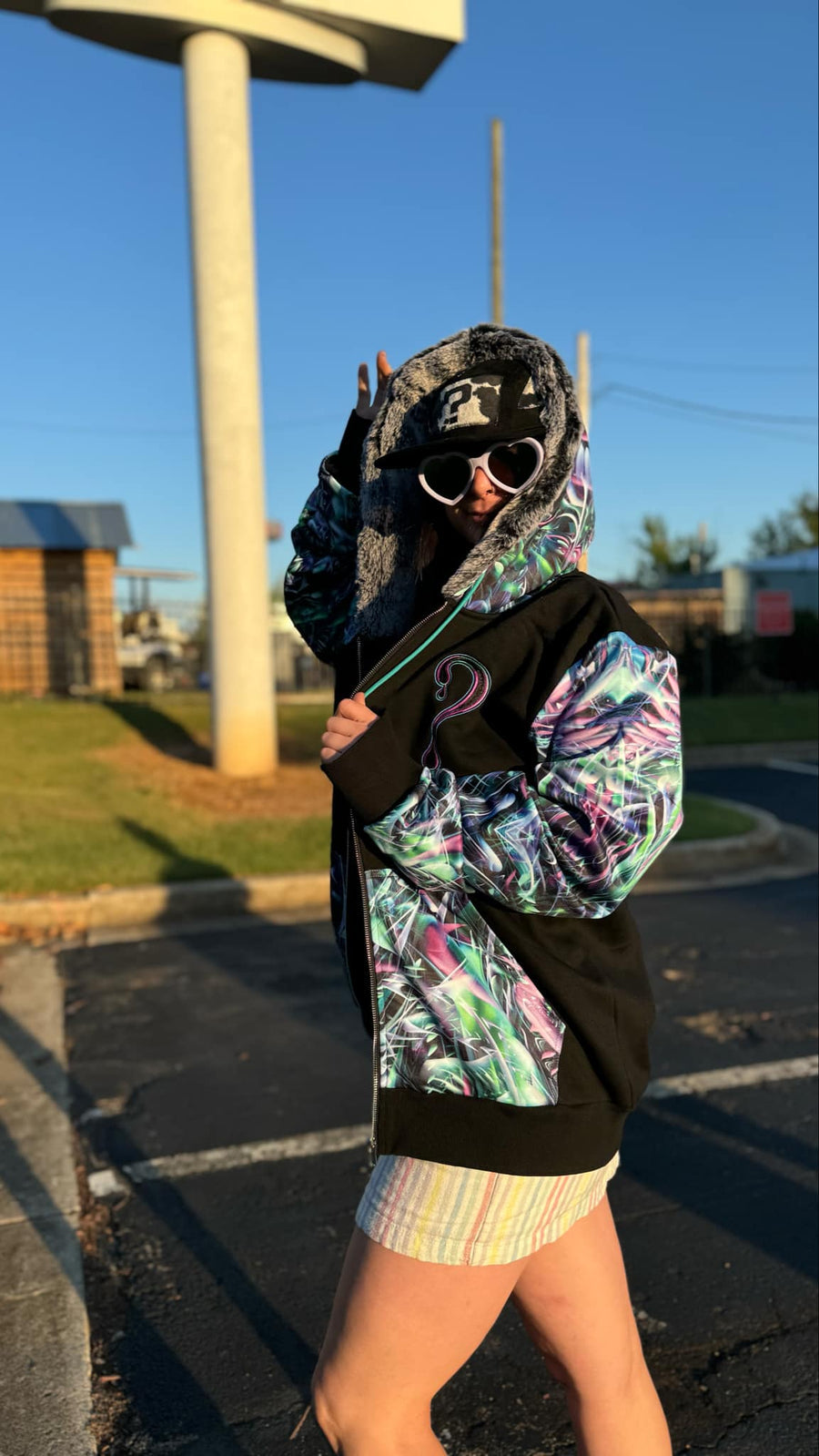 PRE-ORDER Hypnagogia Dripper Hoodie (Zip Up OR Pullover) with Black/Silver tipped Faux Fur in the hood